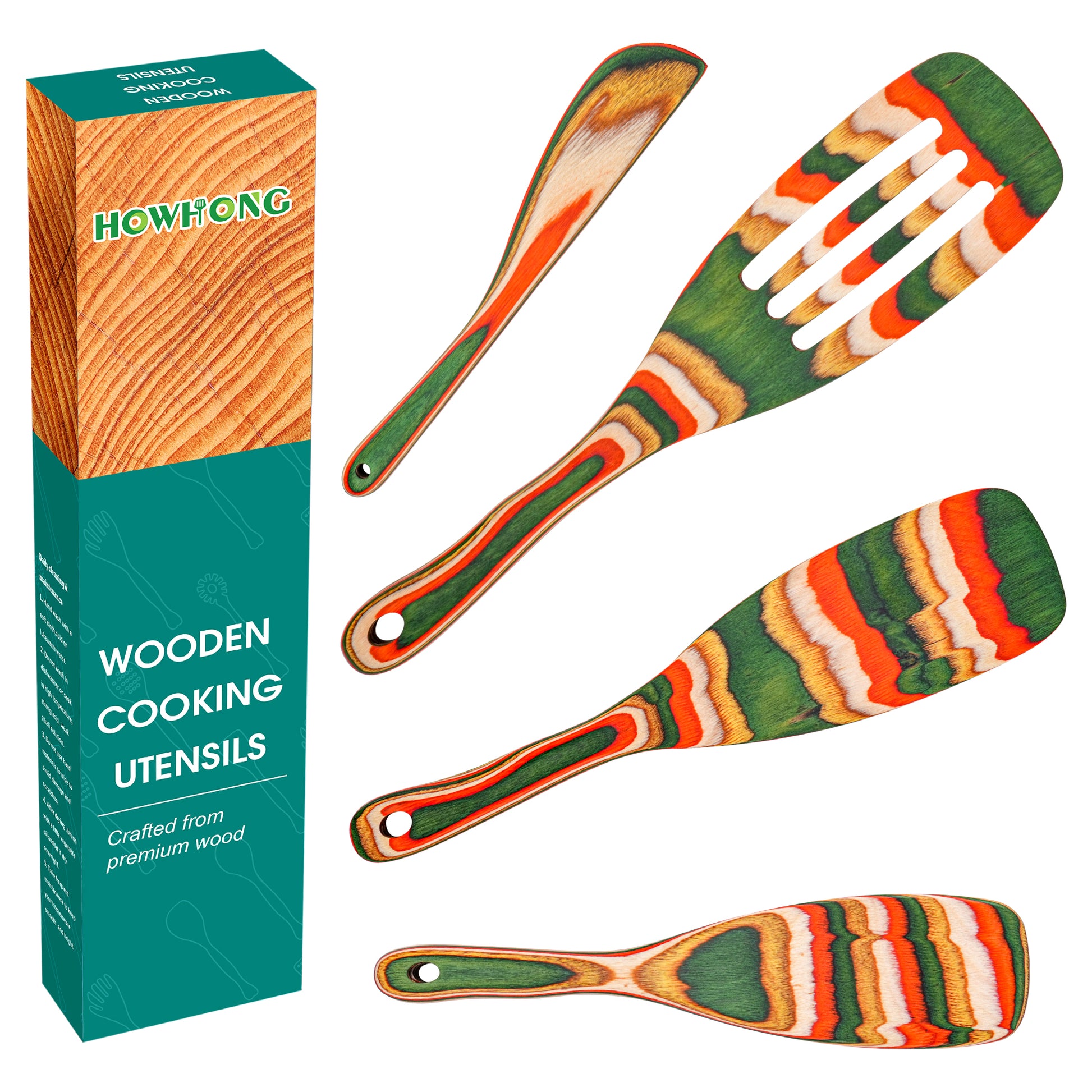 HOWHONG Wooden Spurtle Set 4 Pcs Pakkawood Kitchen Utensils, Wooden Spoons for Cooking, Apartment Essentials Wood Serving Kitchen Tools, Camping Cookware by HOWHONG (Verdant Color)